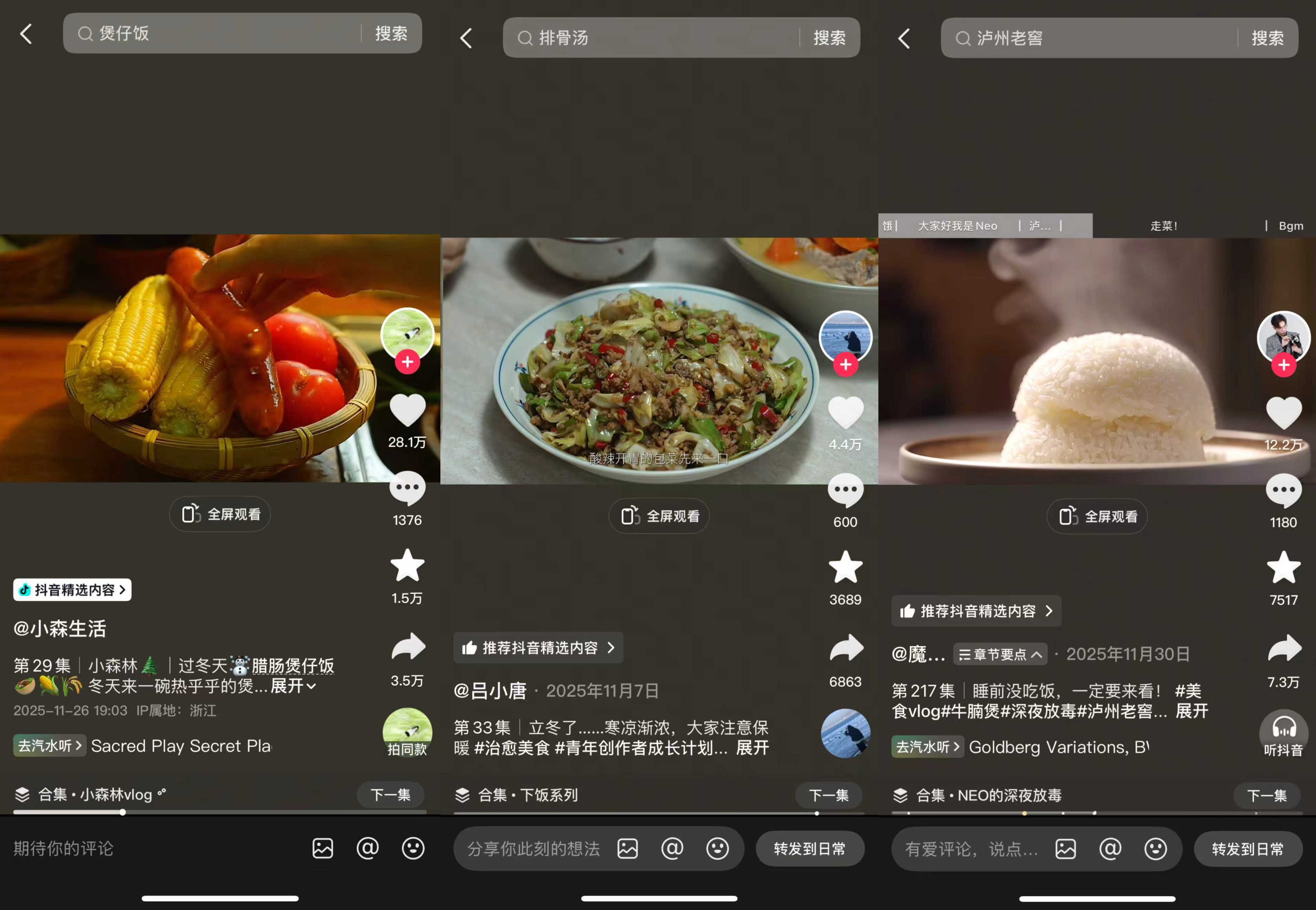 这些视频持续渗透平台内与时令饮食相关的核心用户场景,如同打开了一扇扇窗,让用户看见并相信:理想中的温暖冬日,是可以被真实营造的。