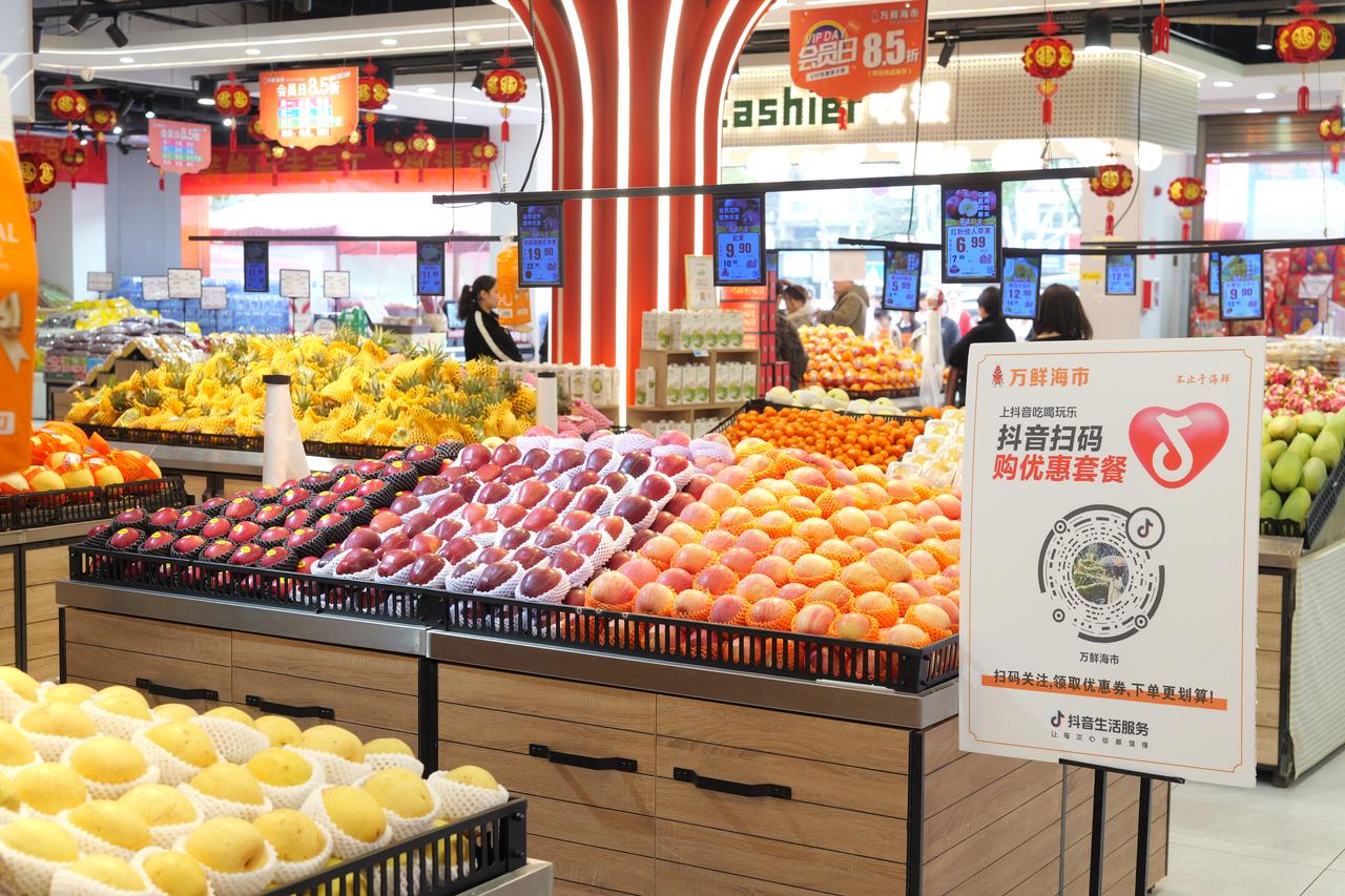 万鲜海市是湖南常德本地的生鲜超市品牌,对这类中小型商家而言,增收规模、获客成本及用户复购频率是他们最关注的几个指标。2025 年年初,万鲜海市引入到店扫码,让年轻收银员在结账时邀请用户扫码买单。