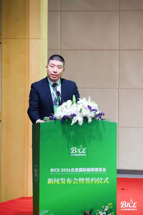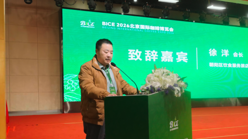 朝阳区饮食服务旅店行业协会会长徐洋率先致辞,他表示,咖啡产业是连接文化与消费的重要纽带,近年来呈现出蓬勃发展态势。这一繁荣景象,离不开产业链上下游的协同深耕与不断创新。在此形势下,BICE 2026北京国际咖啡博览会的举办可谓恰逢其时。这不仅是一场产品展示的盛宴,更是一次行业思想的碰撞、一个深化合作的战略契机。协会将以最大的热忱支持博览会,与各方携手,共筑开放、包容、创新的咖啡生态,共绘行业发展新蓝图。